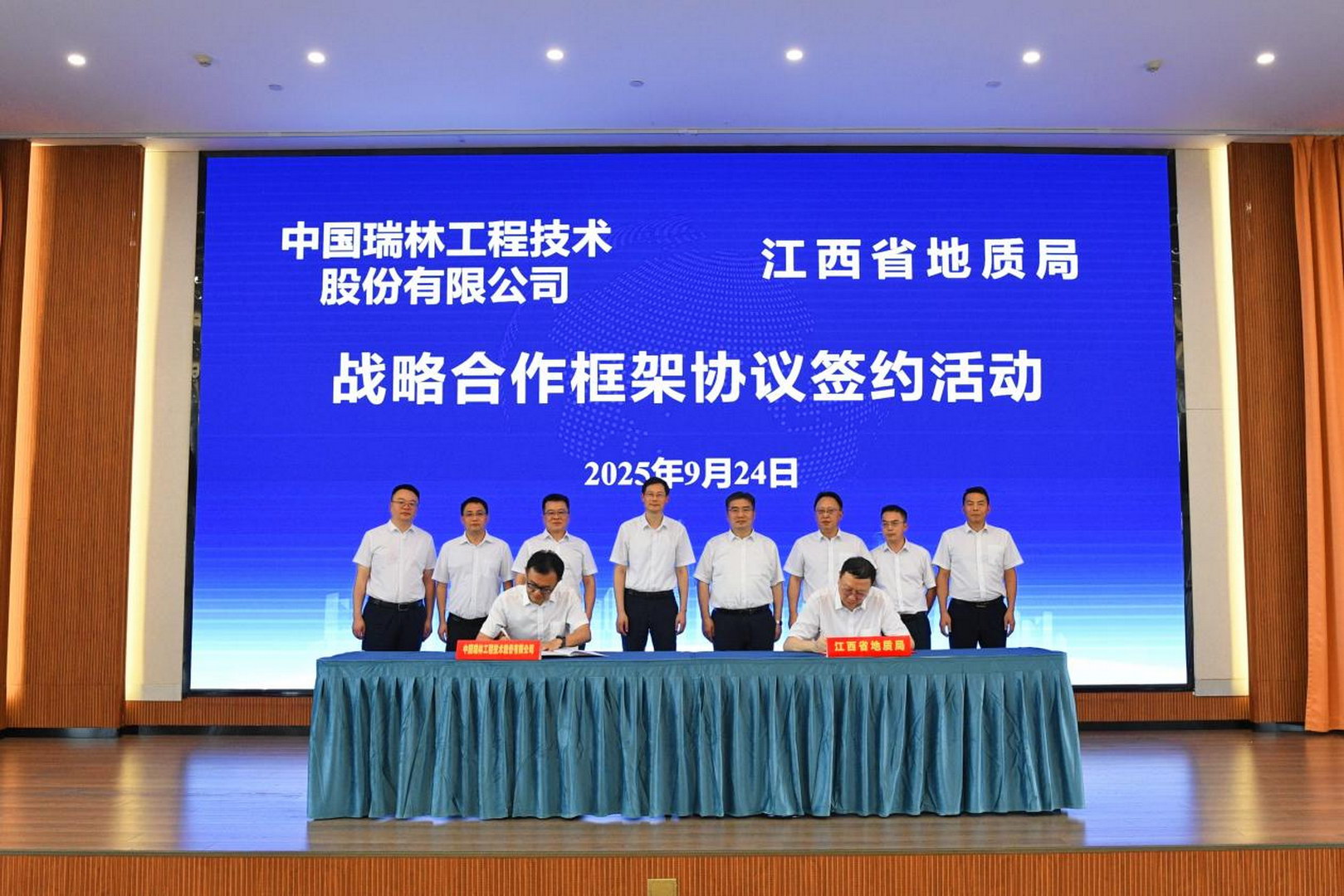 9月24日,中國瑞林工程技術(shù)股份有限公司(以下簡稱“中國瑞林”)與江西省地質(zhì)局(以下簡稱“省地質(zhì)局”)簽訂戰(zhàn)略合作框架協(xié)議。中國瑞林黨委書記、總經(jīng)理吳潤華,省自然資源廳黨組成員、省地質(zhì)局黨組書記饒清華出席儀式并致辭,中國瑞林黨委委員、副總經(jīng)理劉奕與省地質(zhì)局黨組成員、副局長吳俊華代表雙方簽約。