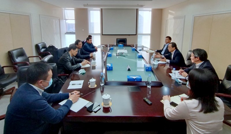 隨后,章曉波一行還訪問了中色建設(shè)股份公司,與中色建設(shè)股份公司總經(jīng)理、黨委副書記秦軍滿及有關(guān)部門負責人就項目開發(fā)、技術(shù)創(chuàng)新、海外業(yè)務(wù)推進等方面的合作進行了交流探討。