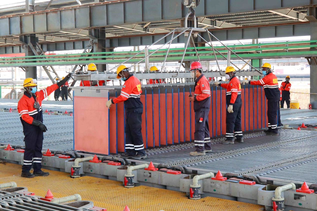 剛果(金)當(dāng)?shù)貢r間 6月30日上午11點18分,華剛礦業(yè)銅鈷礦項目二期工程成功產(chǎn)出首批陰極銅,標志著該項目的生產(chǎn)流程全部打通,正式進入投料試車階段。項目實現(xiàn)了重大里程碑節(jié)點,也為建黨百年獻上一份厚禮。