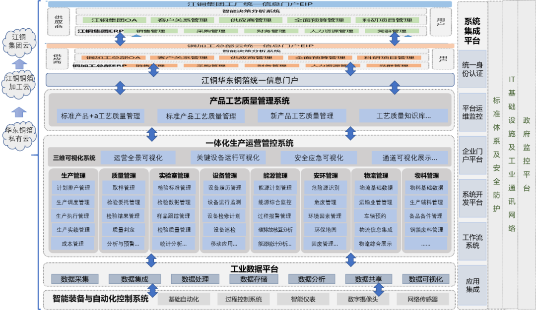 江西江銅華東銅箔信息化工廠系統(tǒng)建設項目是江銅華東銅箔10萬噸鋰電銅箔項目的一期工程,包括廠區(qū)的IT基礎設施建設和工業(yè)數(shù)據(jù)平臺、一體化生產(chǎn)運營系統(tǒng)、產(chǎn)品工藝質(zhì)量管理系統(tǒng)、三維可視化系統(tǒng)等應用系統(tǒng)的開發(fā)部署。