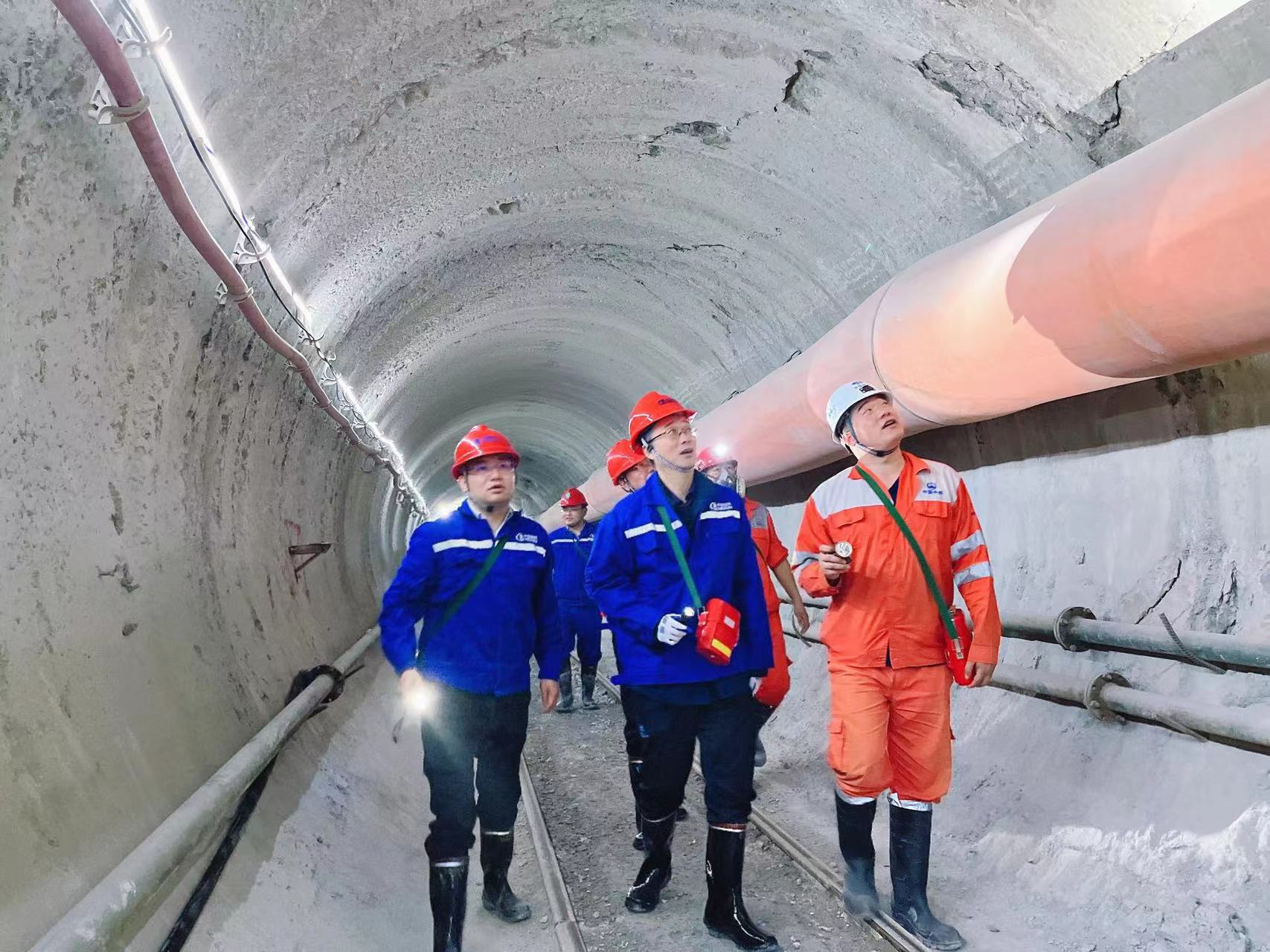 章曉波一行深入項目施工一線,實地查看了主副井建設及井下TBM盾構機施工,并聽取了項目負責人有關情況匯報。在了解到銀珠山項目2023年先后順利完成了副井井塔落成、斜坡道全線精準貫通、選礦廠無負荷聯動試車成功及主要設備帶料聯動試車成功等一系列里程碑工作后,章曉波對項目建設情況給予了肯定。