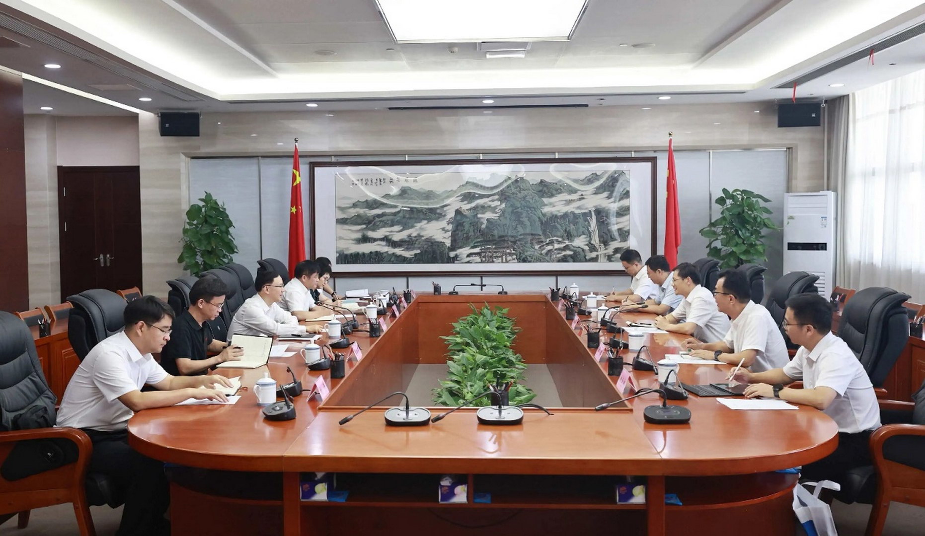 九江市副市長容長貴、市委秘書長匡建軍、市住建局黨委書記周小琳、市生態(tài)環(huán)境局局長劉奇、市自然資源局局長鄒晨曦,中國瑞林黨委委員、副總經(jīng)理劉奕及建筑院、環(huán)境公司、監(jiān)理公司相關(guān)負(fù)責(zé)人參加會談。